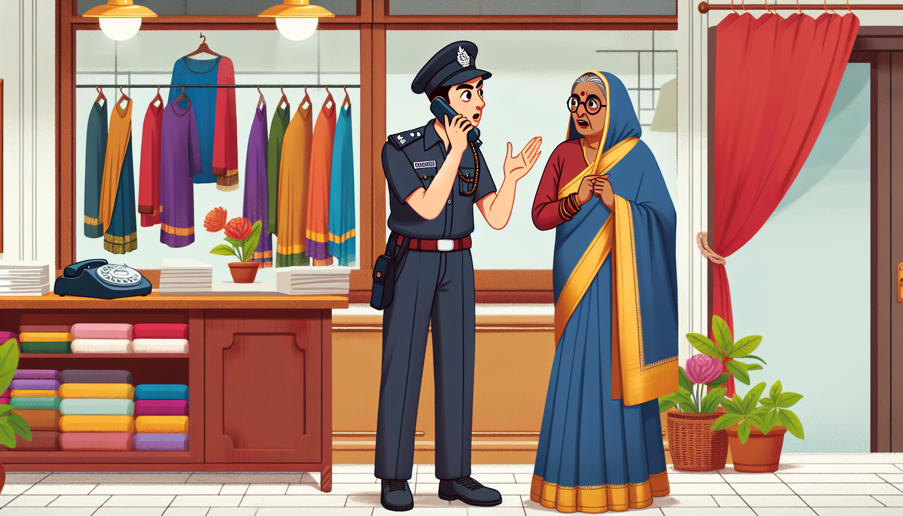 दुकानदार, जो सोचता है कि पुलिस बुलाने से मामला सुलझ जाएगा, पुलिस को फोन करता है और अपनी समस्या बताकर उन्हें दुकान पर बुला लेता है।
